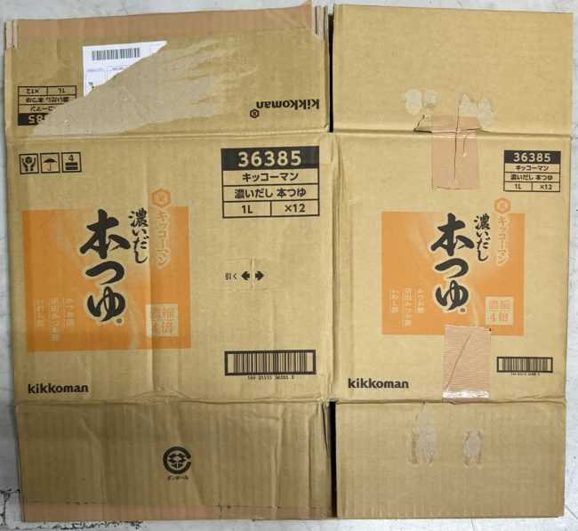 本日紹介するのは「キッコーマン 濃いだし本つゆ」の段ボールです。